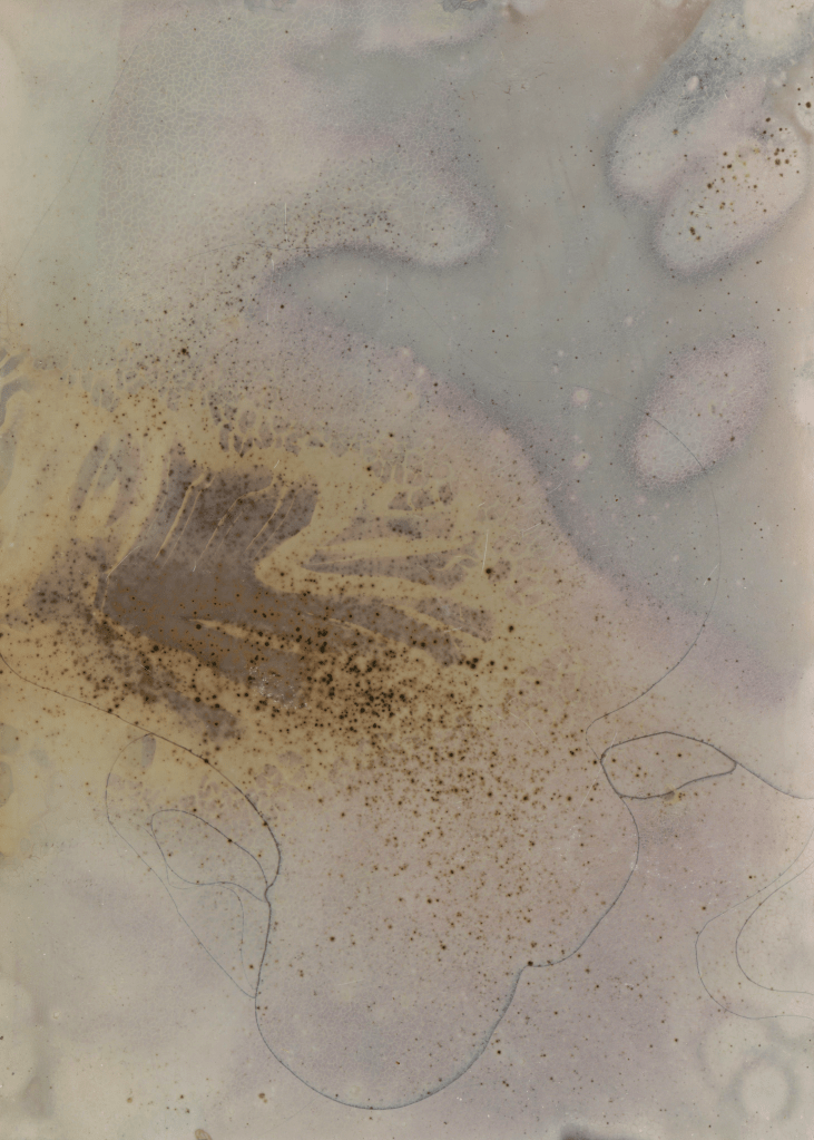 Rio Grande river clay applied to expired silver gelatin paper, then washed away. The earth, in a state of constant becoming in relationship with water, makes an image of themself with themself. (2024-ongoing)